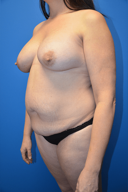 Procedure performed: breast augmentation with periareolar lift, full tummy tuck with liposuction of the flanks.